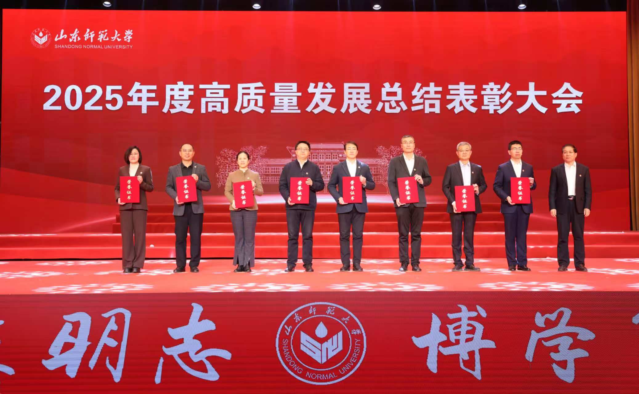 2月1日上午,山东师范大学2025年度高质量发展总结表彰大会在千佛山校区隆重召开。会议全面总结学校2025年高质量发展各项工作成效,表彰为学校建设发展作出突出贡献的先进集体。教务处凭借在教育教学改革、教学资源建设、专业建设等领域的攻坚实绩与亮眼成果,荣获高质量发展攻坚克难奖。